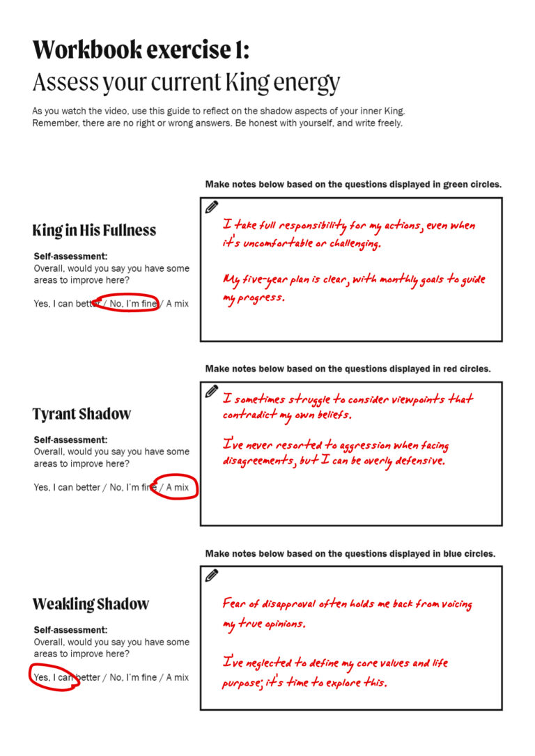 Begin to explore the full power of your King energy with this free lesson from the EmpowerMen King Within shadow workbook course.